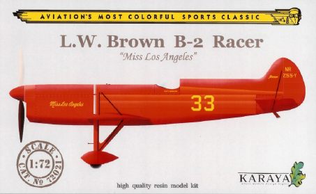 L.W.Brown B-2 Racer “Miss Los Angeles” - resin + decals Karaya 72021 - L.W.Brown B-2 Racer (1/72) Best quality resin model kit in 1/72 scale. Features: Accurate resin model kit Highly detailed cockpit and engine Decals with authentic markings included (Decals made by Techmod) ... MAIN IMAGE |